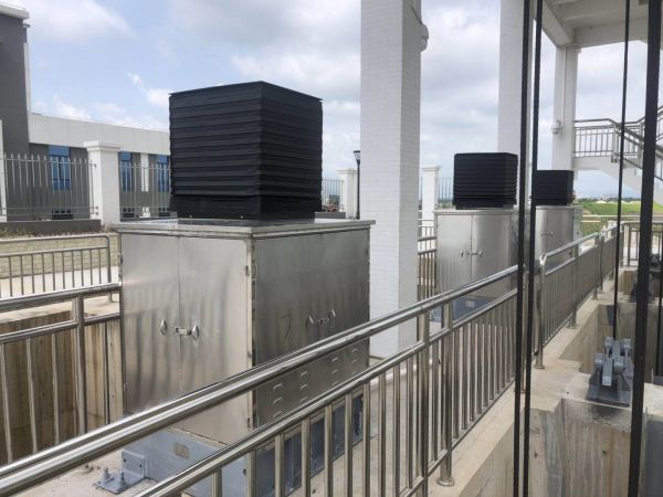 主要技术特点1、多种技术的工程化集成2、结构紧凑、外观简洁新颖、占地面积小3、安装维护方便、运行平稳可靠、噪音低功耗低4、机组启动时拍门适时启动,水泵运行期间拍门全开、改善出水流态并节能5、正常或事故停机时拍门均可匀速关闭,冲击力非常小6、在失电条件下拍门自动关闭,